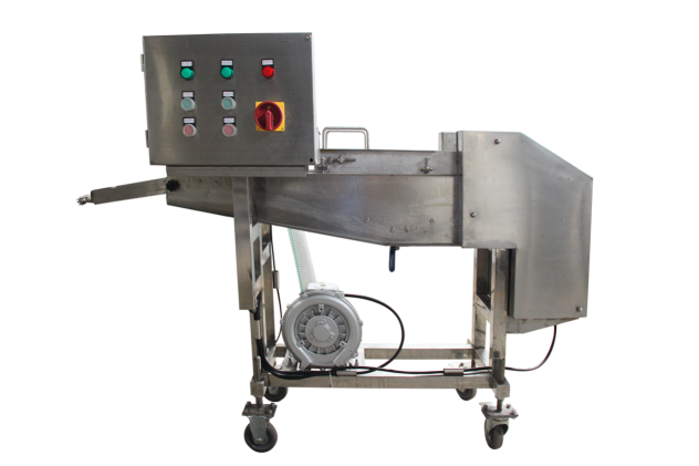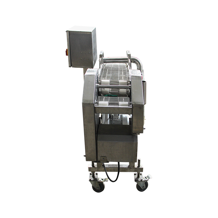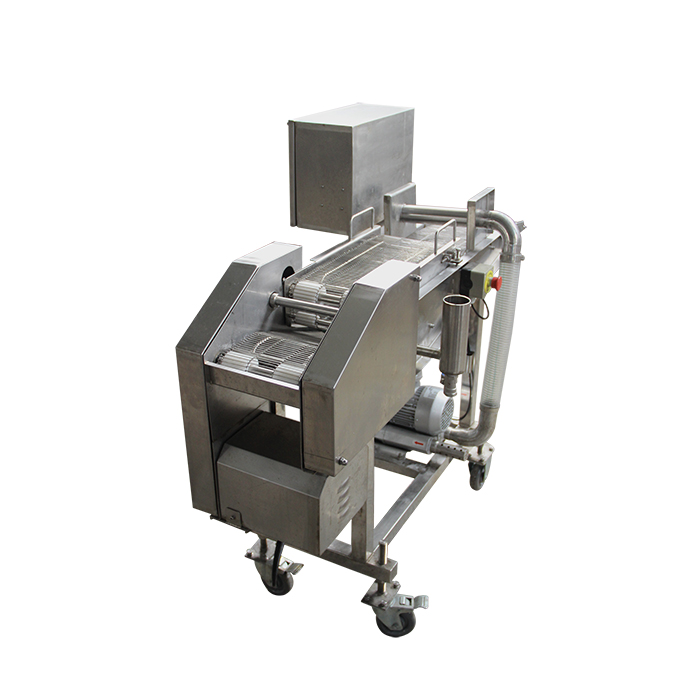 天婦羅裹漿機自動完成產(chǎn)品的上漿過程,稀漿、濃漿均可。產(chǎn)品經(jīng)上下網(wǎng)帶,在漿液中沾滿漿液,上漿后的產(chǎn)品經(jīng)風(fēng)淋,避免過多的漿液帶入到下一工序。