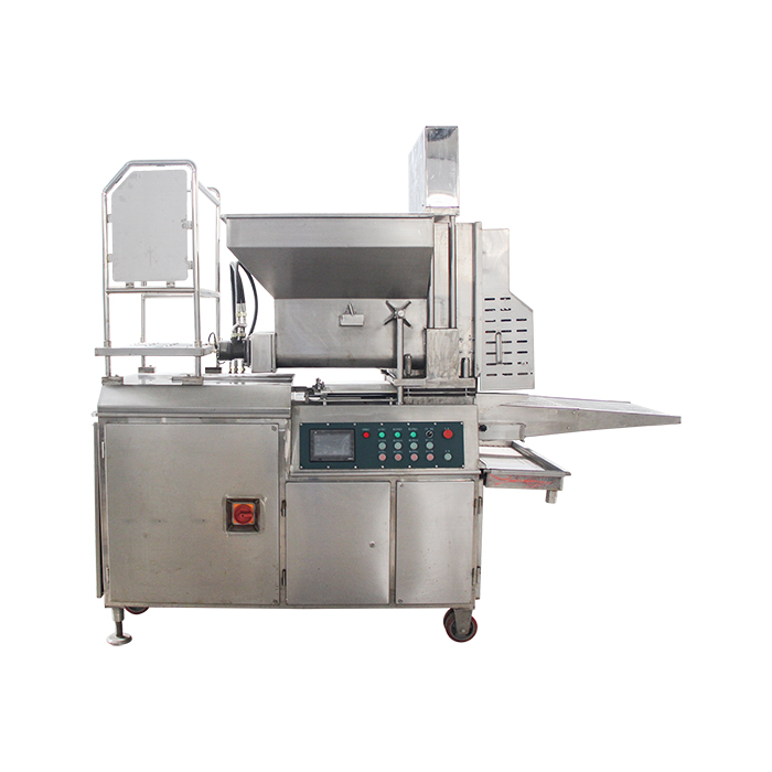全自動(dòng)雞塊成型機(jī)將混合好的雞肉原料通過模板可以加工成卡通形、魚形、數(shù)字形、三角形、長(zhǎng)方形、圓形、心形及特殊形狀的產(chǎn)品,魚塊成型機(jī)自動(dòng)完成原料的充填,成型、輸出等工序。??系禄湲?dāng)勞雞塊成型機(jī)與浸漿機(jī).上粉機(jī)、上漿機(jī)、上面包屑機(jī)、上鮮康機(jī).油炸機(jī)、蒸煮機(jī)、速凍機(jī)、包裝機(jī)連成熟食全自動(dòng)生產(chǎn)線,生產(chǎn)土豆餅..蔬菜餅.漢堡肉餅、上校雞塊、黑椒雞塊.香辣雞塊.雞柳、魚排.牛排等產(chǎn)品。此成型機(jī)與烘烤箱組裝成生產(chǎn)線做寵物食品。