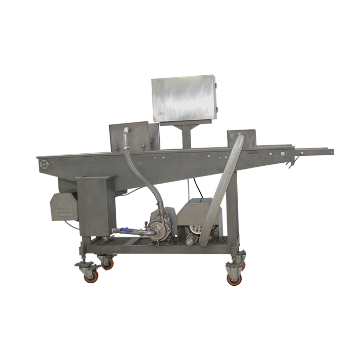 淋漿機(jī)是把產(chǎn)品通過淋漿部分后,下部由下淋漿槽上儲(chǔ)存的漿液均勻粘附上,上部由漿幕將漿液粘附上。通過風(fēng)刀時(shí),多余的漿液被吹落。然后輸入到下一工序。裹漿機(jī)適合于雞肉、牛肉、豬肉、魚、蝦等海鮮產(chǎn)品,肉餅上漿機(jī)適用于上面包屑和上粉前的工藝。雞塊上漿機(jī)可以對(duì)市場上流行的漢堡肉餅、麥樂雞塊、魚香漢堡肉餅、土豆餅、南瓜餅、肉串等產(chǎn)品進(jìn)行上漿處理,是食品工廠理想的上漿設(shè)備。