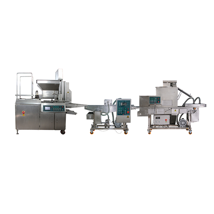 蝦餅生產(chǎn)線把混合好的原料經(jīng)過成型,上漿,上鮮康或者干康,油炸,速凍等工藝做出不同厚度不同規(guī)格的蝦餅。模具可以生產(chǎn)不同形狀的產(chǎn)品(如三角形,橢圓形,卡通雞塊形狀,不規(guī)則形狀)通過模具更換產(chǎn)品。蝦餅生產(chǎn)線適用于肉類、水產(chǎn)、蔬菜、奶酪以及它們混合料。蝦餅生產(chǎn)線的需要配置前處理設(shè)備和后處理設(shè)備:絞肉,混合,油炸包裝等設(shè)備,油炸蝦餅生產(chǎn)線與這些配套設(shè)備組成一條完整的快餐調(diào)理生產(chǎn)線。