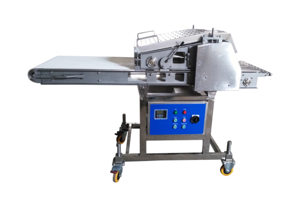 雞肉壓整機適用范圍:該設(shè)備適用于厚度小于40mm、無骨的所有肉塊的壓延。