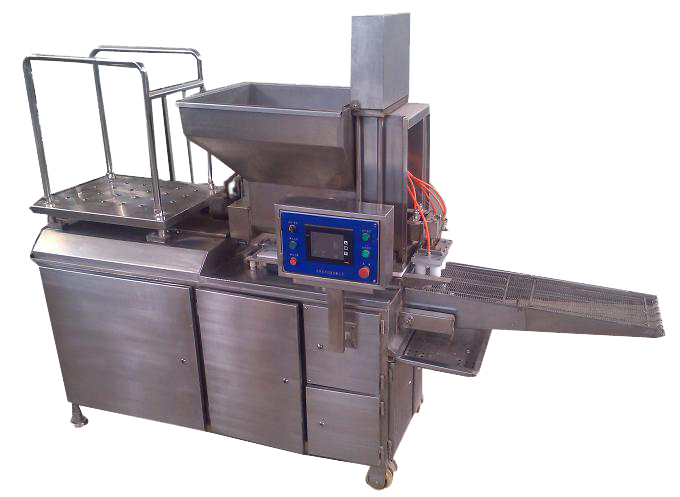 全自動肉排成型機將混合好的原料通過螺桿送料到料箱,通過模板可以加工成卡通形、魚形、數字形、三角形、長方形、圓形、心形及特殊形狀的產品,自動完成原料的充填,成型、輸出等工序。成形模板更換方便產量高,質量穩(wěn)定。牛排成型機與上粉機、上漿機、上面包屑機、油炸機、蒸煮機、速凍機、包裝機連成熟食全自動生產線,生產漢堡肉餅、雞塊、雞柳、魚排.牛排等產品。雞排成型機與烘烤箱組裝成生產線做寵物食品。